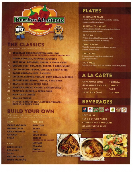 Burritos Alinstante is an authentic New Mexican restaurant that specializes in burritos. Our food is made just like your grandma would have made it in her own kitchen. Made fresh everyday from the highest quality ingredients. Please visit our locations in Belen, Los Lunas, Bosque Farms, and Albuquerque, New Mexico.