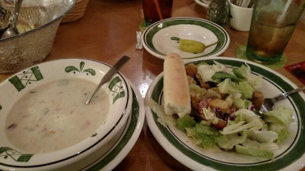 Olive Garden offers a variety of delicious Italian specialties for lunch, dinner or take out. Enjoy our freshly baked garlic breadsticks and your choice of homemade soup or salad with any entree.