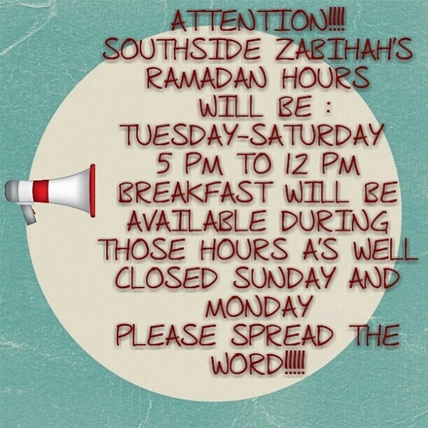 Restaurant HoursSouthside Zabihah Halal Eatery