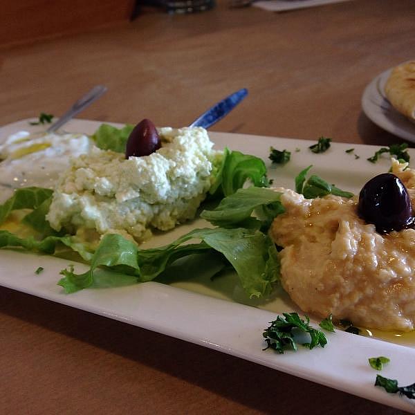Yevma is an authentic greek restaurant. An estiatorio is a restaurant that serves cooked foods from the oven called magirefta but it can also have grilled to order foods called tis oras, and even fish, as well as appetisers (mezedes), and salads. A psistaria is a grill house where you get spit-roast lamb, steaks, kokoretsi, grilled or rotisserie chicken as well as salads and appetisers. A taverna usually has a smaller menu and specializes in something and is mostly for nighttime, long meals, lots of wine and conversation. Grilled meats like paidakia, appetisers, and a few oven cooked dishes. There are psaro-tavernas (fish tavernas) where you will have a choice of fresh fish sold by the kilo or order, lots of appetisers, and even some meat and vegetable dishes.
